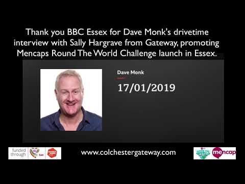 Dave Monk Bbc Essex }}- Dave Monk - BBC Essex interviews Sally Hargrave - Gateway, about the launch of Mencap's Round the World Challenge in Essex.